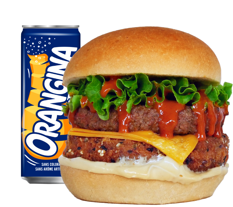 Plonge dans un cauchemar de saveurs avec son steak haché juteux qui va te hanter, sa galette de potiron pleine de caractère, et sa sauce au curry rouge diaboliquement épicée. Tout ça enfermé dans un bun brioché moelleux, prêt à te faire trembler de plaisir.