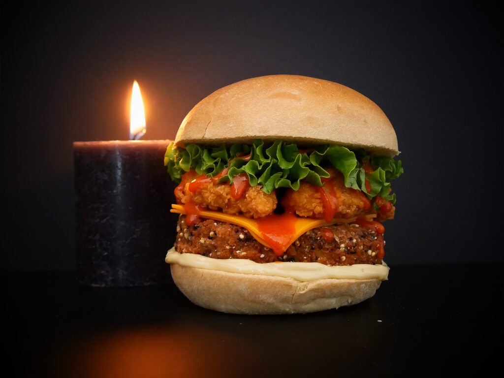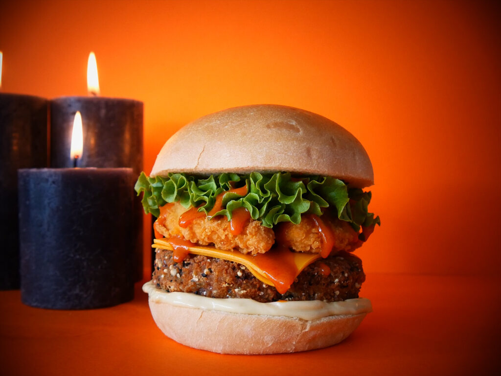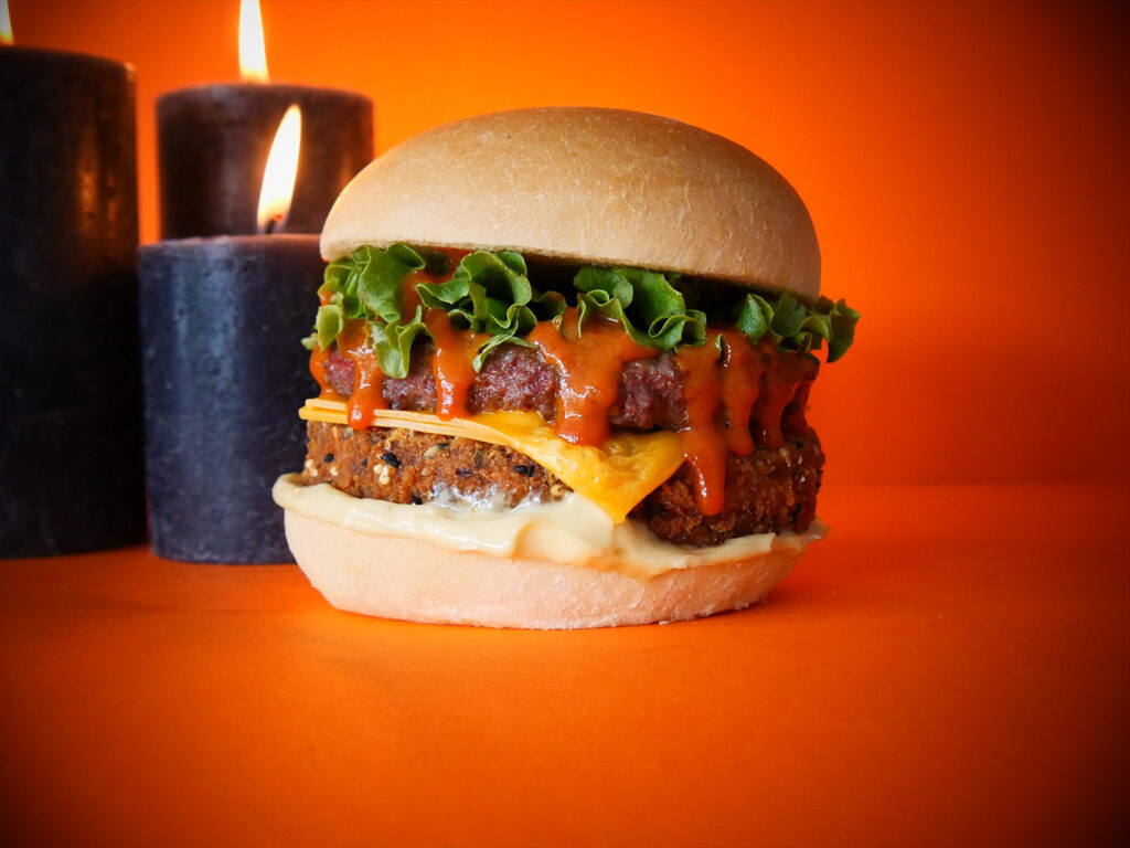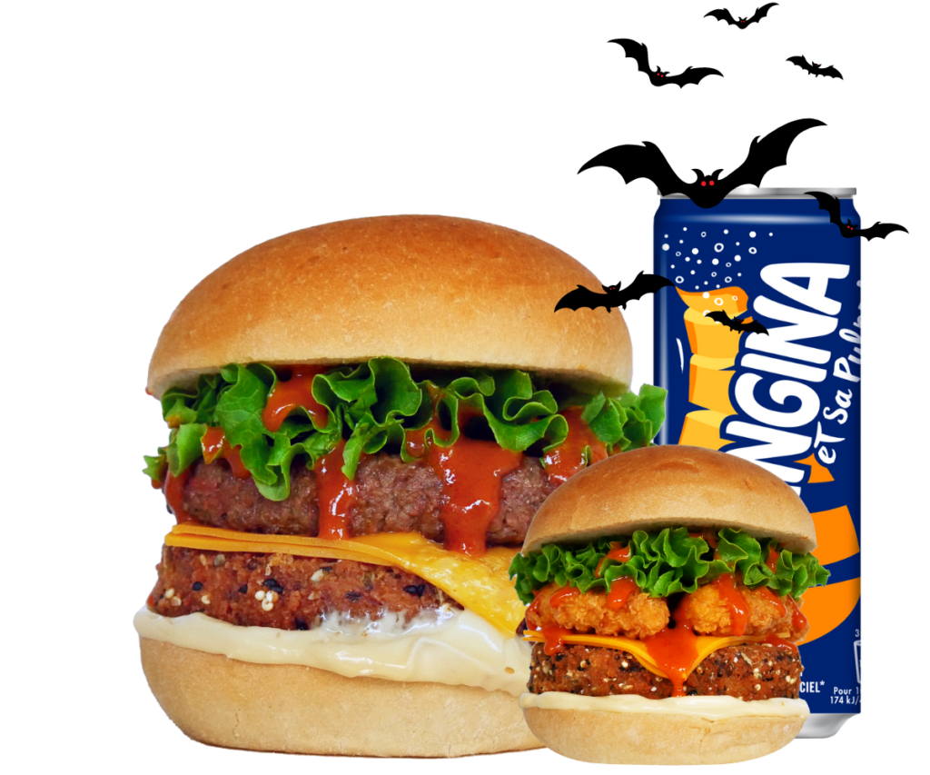 Avec ses tenders de poulet croustillants qui croquent sous les canines, sa galette de potiron audacieuse, et sa sauce au curry rouge qui t’emmène sur le bûcher, ce burger est une véritable créature de la nuit. Enveloppé dans un bun brioché il te séduira à chaque bouchée, alors prépare-toi pour un festin monstrueux qui va te hanter… de saveurs !